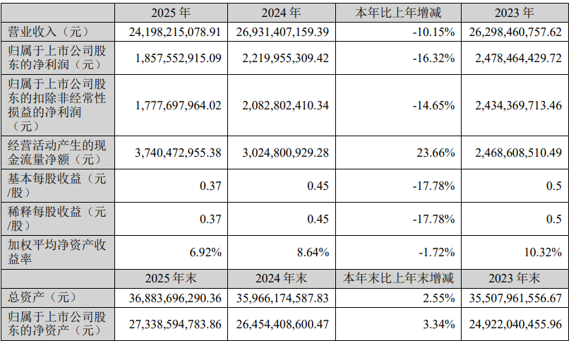 把柄公告清楚,2025年,华峰化学斥逐营业收入241.98亿元,同比着落10.15%;包摄于上市公司股东的净利润18.58亿元,同比着落16.32%;基本每股收益0.37元,同比着落17.78%。尽管功绩出现回调,但公司方针活动产生的现款流量净额达37.40亿元,同比增长23.66%,展现出苍劲的现款创造智商。