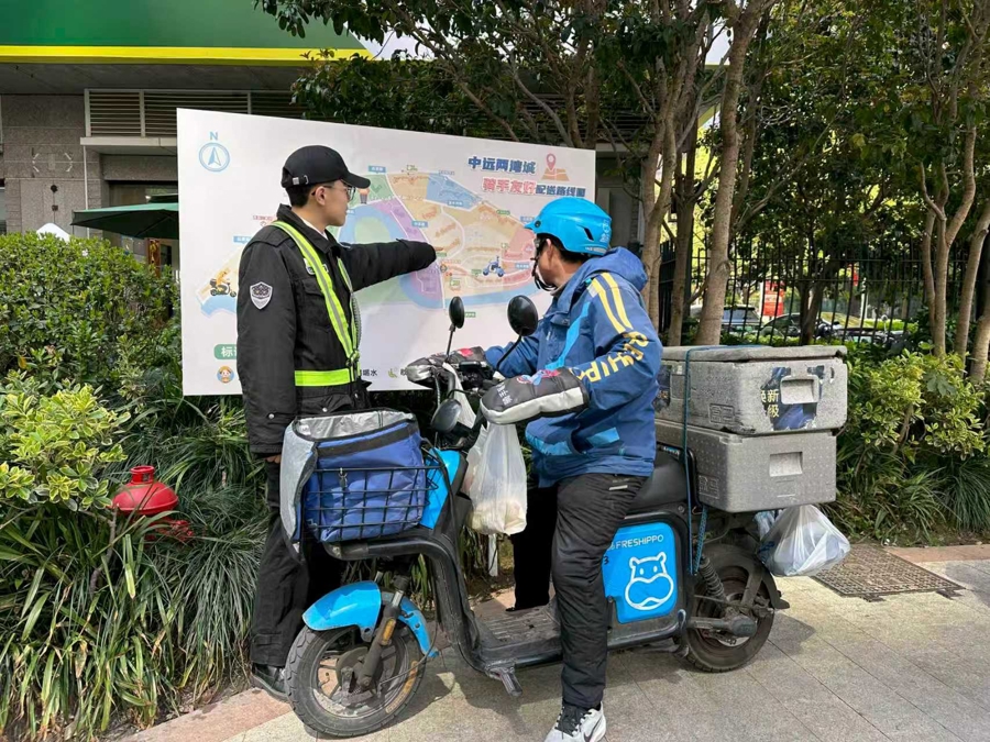 汇注普陀交警一大队、中山北路派出所、社区事务受理服务中心等力量,为小哥出行与职责添砖加瓦,提供骑行安畅赋能、法律支援服务,开展职业帮扶与功绩手段培训率领。针对中远两湾城超大社区快寄递达肃穆,专诚提供引路率领,让小哥出行更顺畅、职责更宽解、权力更有保险。