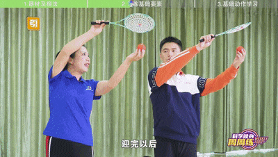 要领:球拍不管在右侧还是在左侧,拍尖必须要冲前;其次,在摆动时,肩不能过高;摆到左侧时必须要转腰,用肩轴冲向中间。