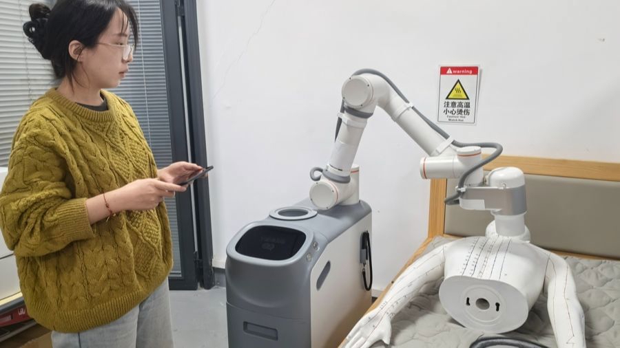 “它能24小时连续工作,不怕累、不用眨眼、不怕烟熏。”熊根良介绍,在整个操作过程中,唯一需要人工介入的就是更换艾条和过滤棉。因此,理疗师只需通过iPad给机器人下达指令,就可同时“指挥”七八台机器人,摆脱了传统“一对一”的人力束缚,让医疗资源得到高效利用。
