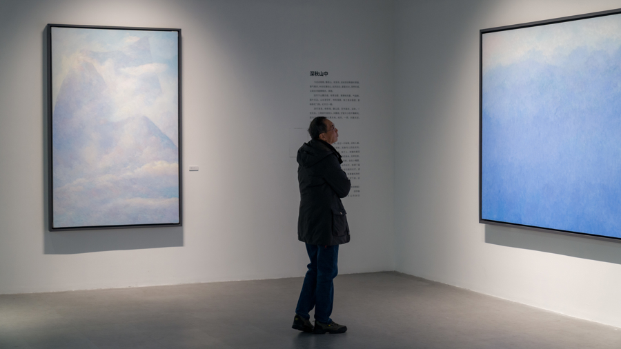 田学森的“蓝调”系列作品,在展览中集结亮相。这些作品不仅是直观的视觉呈现,更蕴含着艺术家对生命本真、自然大道的思考与探寻,展现出东方哲学精神与当代油画语言的深度融合。