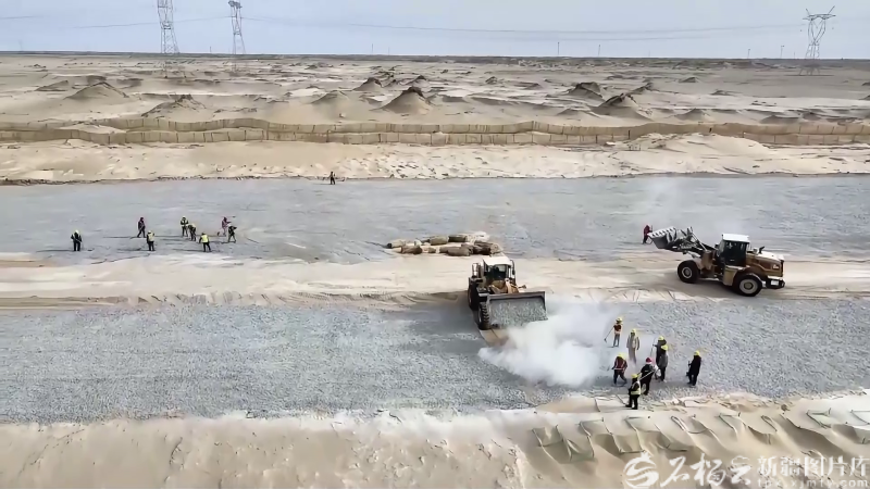 在“疆电外送”第四通谈电源技俩新能源部分生态治沙工程现场,建设者们在风沙中奋战。巴音郭楞融媒体中心供图