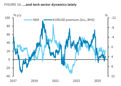 是什么在支抓这个溢价?巴克莱合计,这越来越与好意思国私有的风险身分高度相干,一是好意思国国内的经济战略不细目性,二则是好意思国科技板块的估值波动。