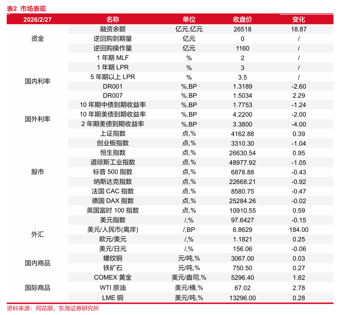 利率与汇率。资金方面:央行净回笼,政府缴款回话,重复跨月及税期走款季节性成分,短期资金利率小幅不竭。央行连接加大中恒久资金投放力度,同行存单收益大量下行。利率债方面,周内债市调整更多是节后赢利回吐+季节性成分的组合。经济基本面+避险情谊的救济与两会计谋预期压制并存,展望两会前债市仍将保持箱体震憾情势。好意思债方面,面前好意思债收益率下行主要靠计谋和地缘政事不驯顺下的避险买盘驱动,短期仍有下行空间但幅度有限。汇率方面,央行逆周期治疗属于典型的“稳汇率、防超调”。独一基本面不发生要紧逆转,东谈主民币暖热增值的大标的大略率延续,但节拍会更可控、波动更健康。