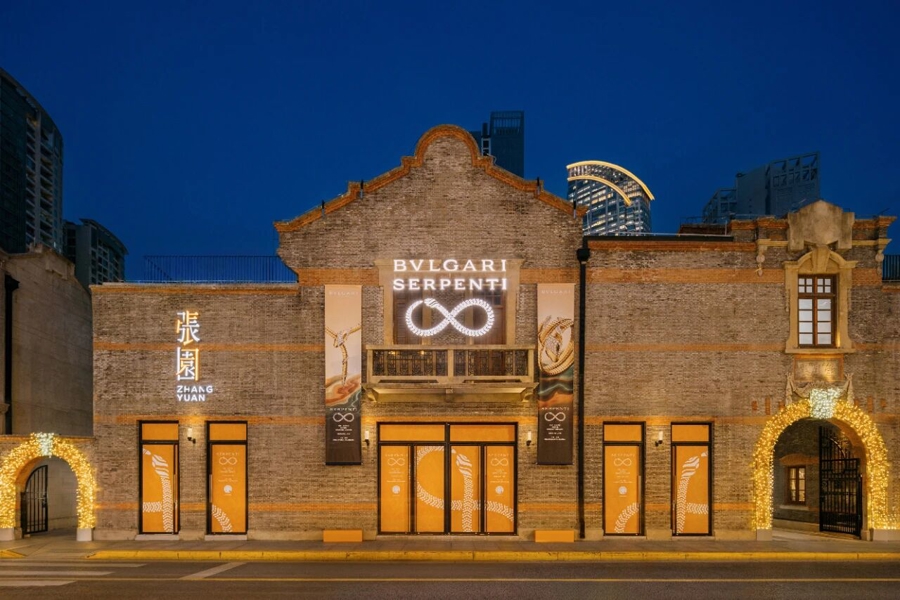 三年来,在张园西区,国际顶尖品牌与百年石库门碰撞出奇妙的化学反应。宝格丽“灵蛇”特展在雕花门廊内探讨东西方美学对话;CELINE将南法夏日搬进石库门,进行新品全球首发;江诗丹顿270周年“臻途”体验空间,在历史建筑中回溯跨越三个世纪的制表传奇……这些并非简单的店铺入驻,而是一场场精心编排的“品牌文化演出”。