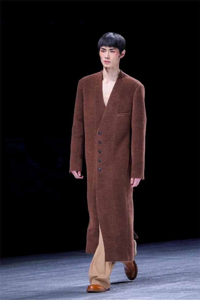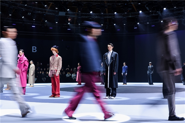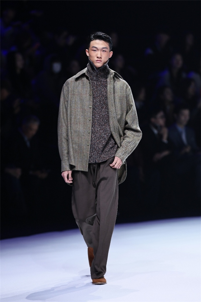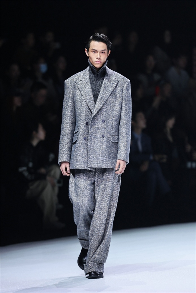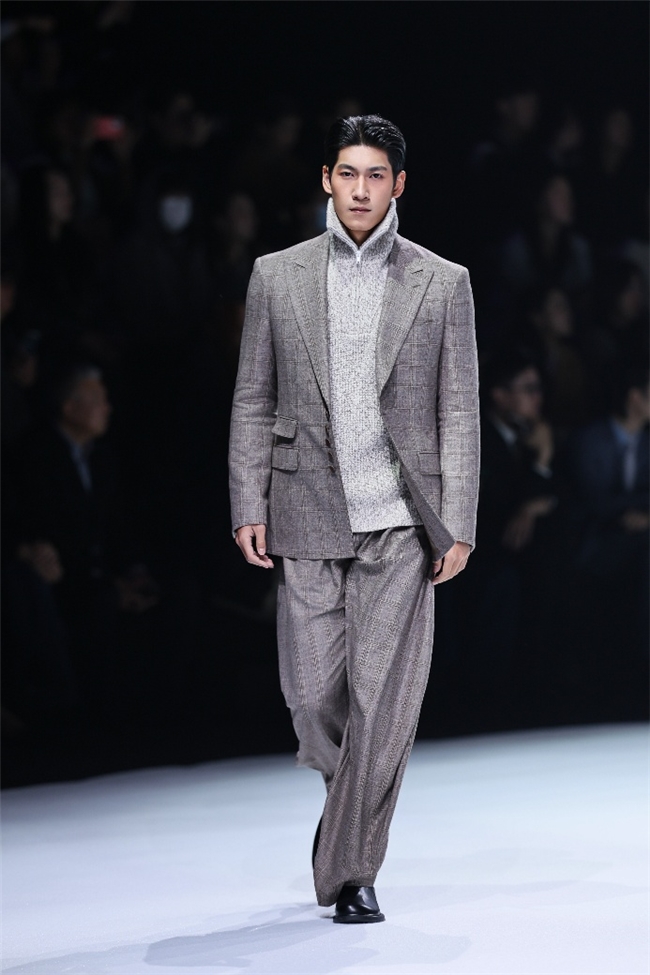 秀演以流行趋势中枢认识“聚势”及分主题“砥砺、流淌、藏蕴、光影”为灵感根基,通过“循真、共生、云游、万象”四大系列作品传递男装趋势的全新发达,于悠长文韵和现代想象的理念交织中,在飘溢温润智感和摩登先锋性的前卫情境下,重塑现代商务男装的想象好意思学,以马虎、贤明的雅士风味,焕启2026秋冬中国西服进阶标的。
