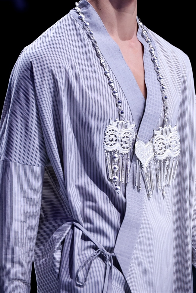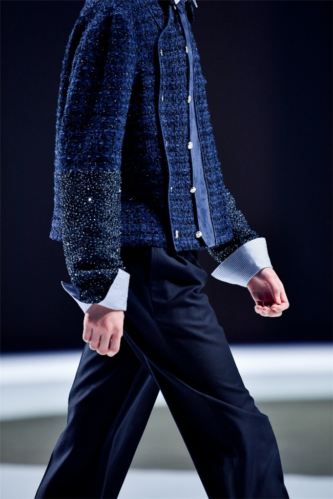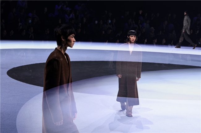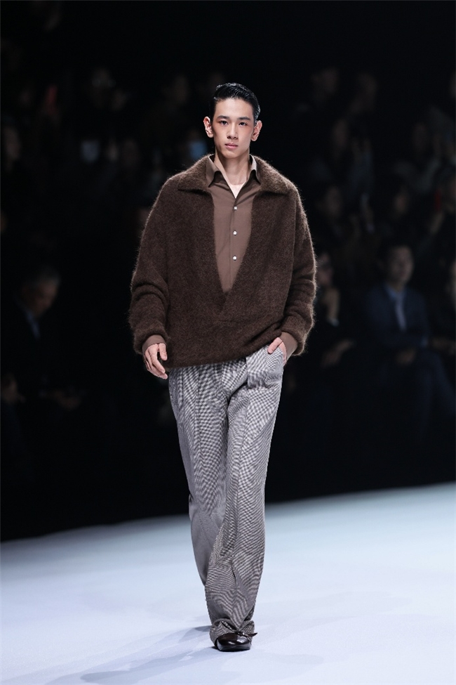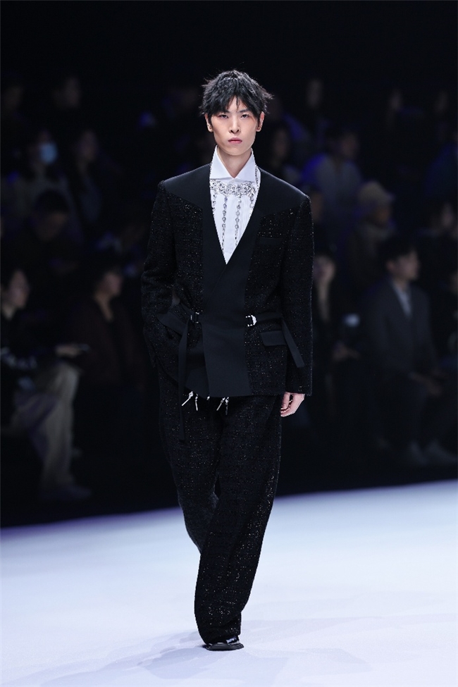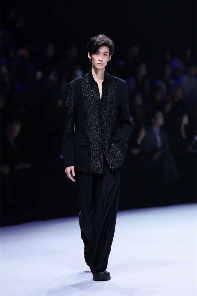 秀演以流行趋势中枢认识“聚势”及分主题“砥砺、流淌、藏蕴、光影”为灵感根基,通过“循真、共生、云游、万象”四大系列作品传递男装趋势的全新发达,于悠长文韵和现代想象的理念交织中,在飘溢温润智感和摩登先锋性的前卫情境下,重塑现代商务男装的想象好意思学,以马虎、贤明的雅士风味,焕启2026秋冬中国西服进阶标的。