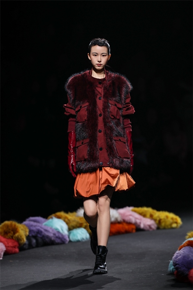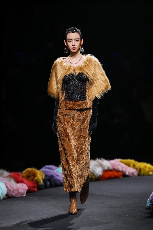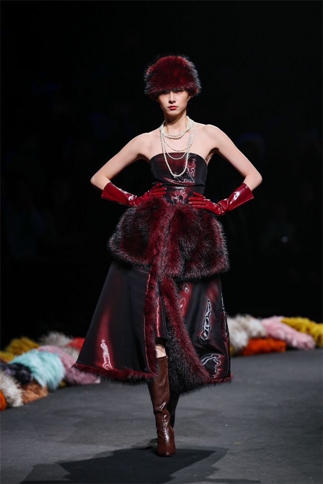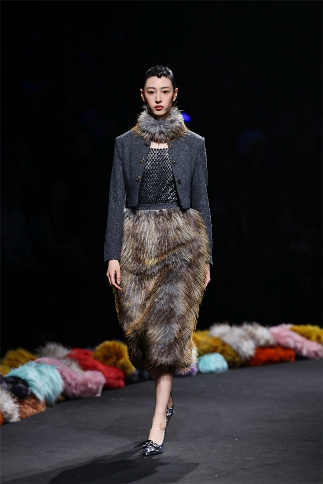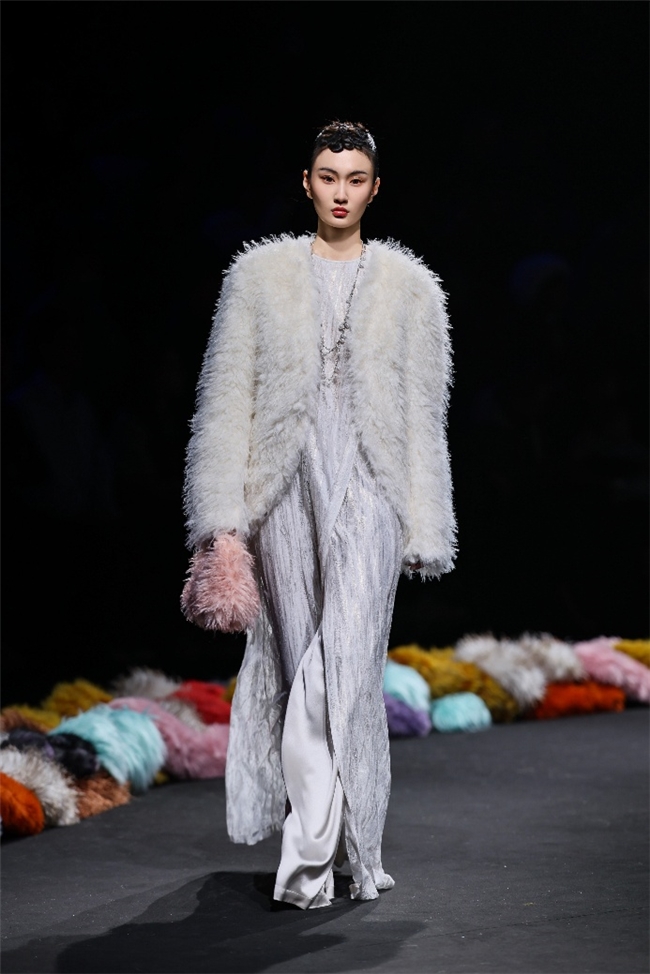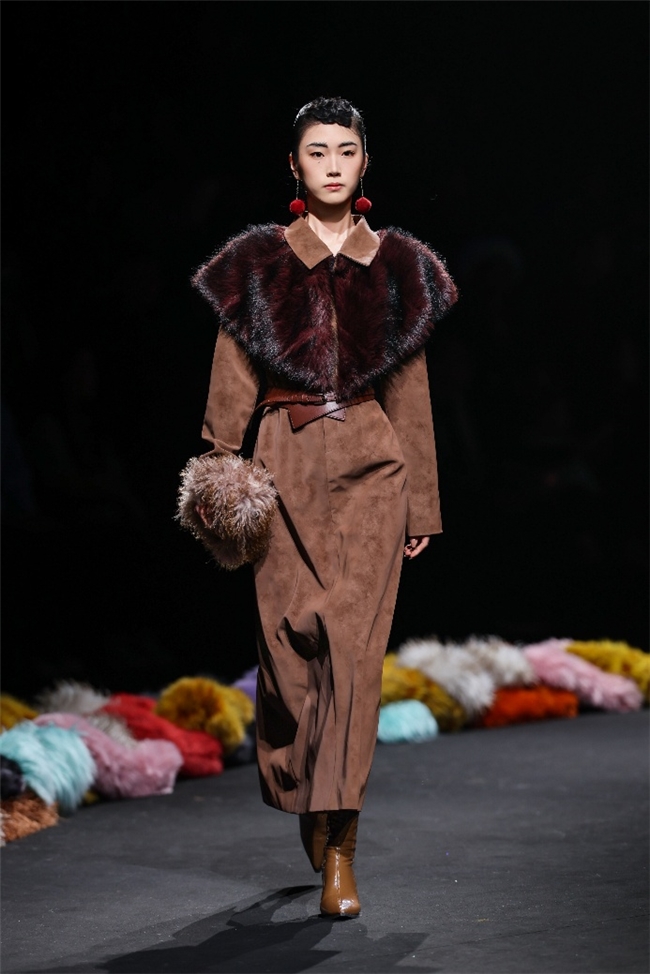 “雕饰”主题以一众实用摧毁的皮草单品,阐扬品性计算打算的不朽魔力和幽闲典雅的新古典好意思学。质地丰盈的毛绒织物以经典的裙装、大衣廓形为载体,通过运动剪裁呈现出柔韧、舒展的线条,在庄重和纰漏的均衡中,赋予实穿款型昼夜皆宜的特色。十分值得一提的是,纬一凭借超卓的研发实力,重塑织物纤维结构和织造工艺,让仿水狗尾续等面料复原简直的自然皮草后光,更在鸡血石红、翠石绿等浓郁颜色的交汇中,垒富优配结合材质拼接和私密自然的肌理阐扬,让每一件单品都显现温润华好意思的高端质感。