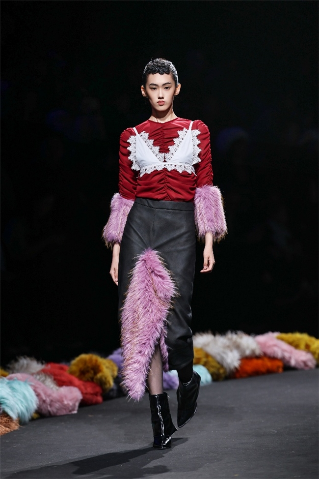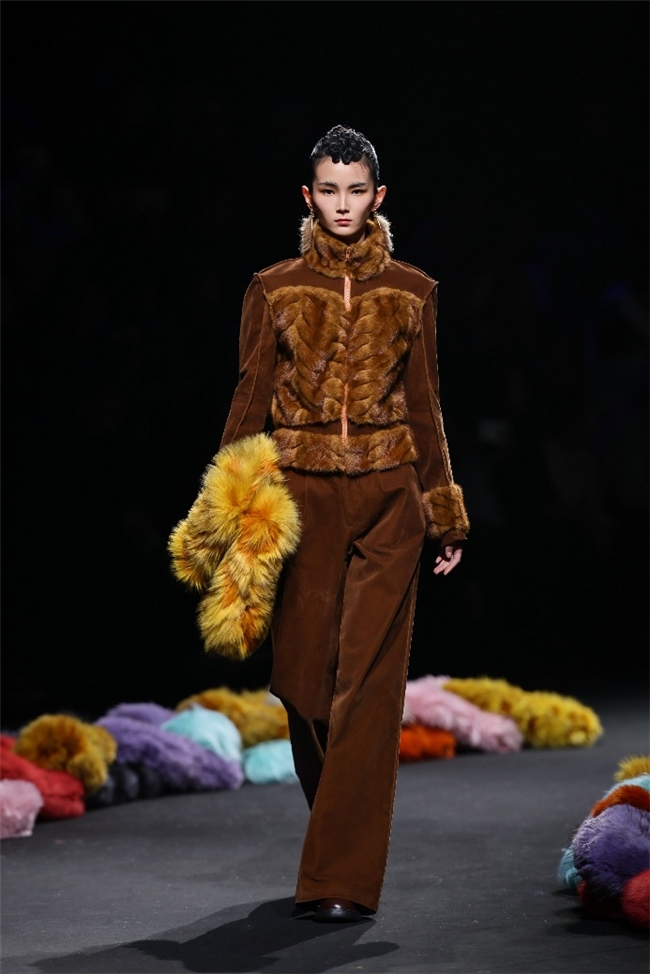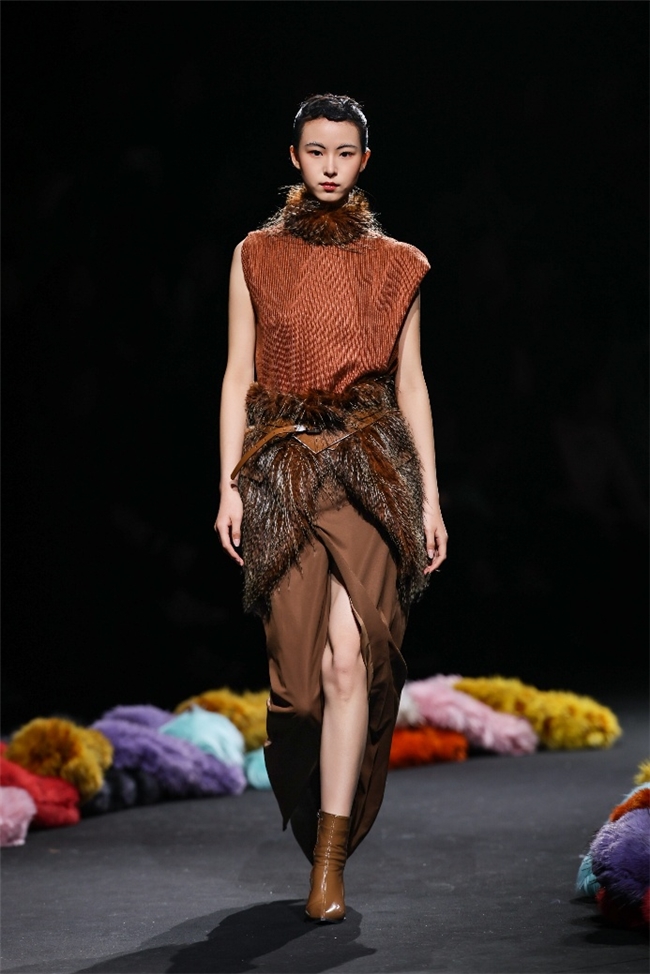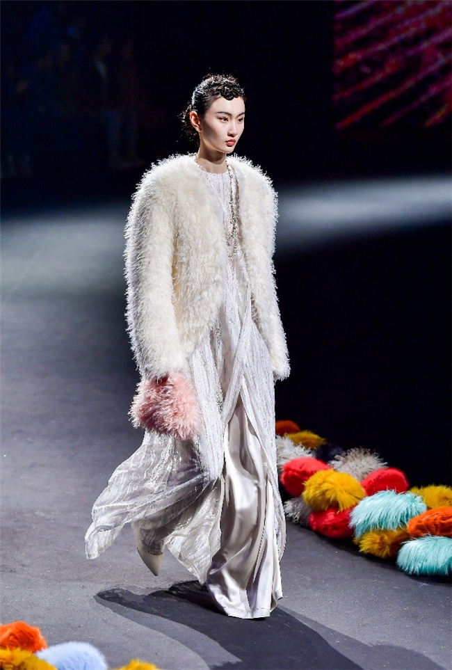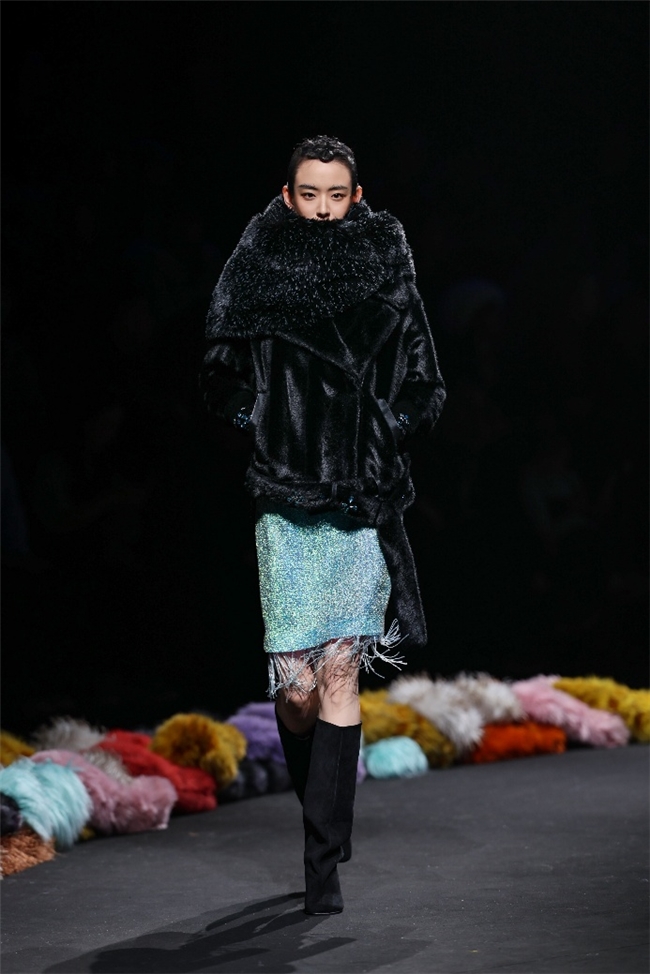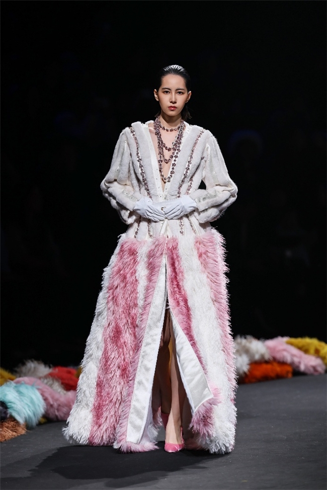 “雕饰”主题以一众实用摧毁的皮草单品,阐扬品性计算打算的不朽魔力和幽闲典雅的新古典好意思学。质地丰盈的毛绒织物以经典的裙装、大衣廓形为载体,通过运动剪裁呈现出柔韧、舒展的线条,在庄重和纰漏的均衡中,赋予实穿款型昼夜皆宜的特色。十分值得一提的是,纬一凭借超卓的研发实力,重塑织物纤维结构和织造工艺,让仿水狗尾续等面料复原简直的自然皮草后光,更在鸡血石红、翠石绿等浓郁颜色的交汇中,垒富优配结合材质拼接和私密自然的肌理阐扬,让每一件单品都显现温润华好意思的高端质感。