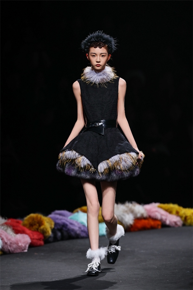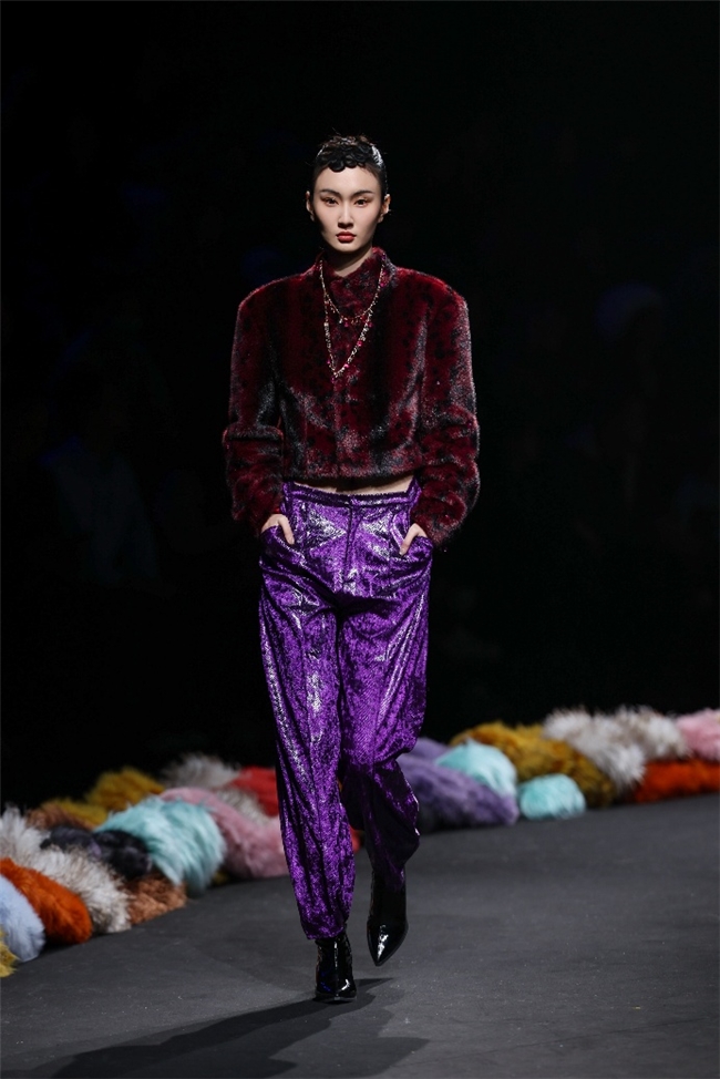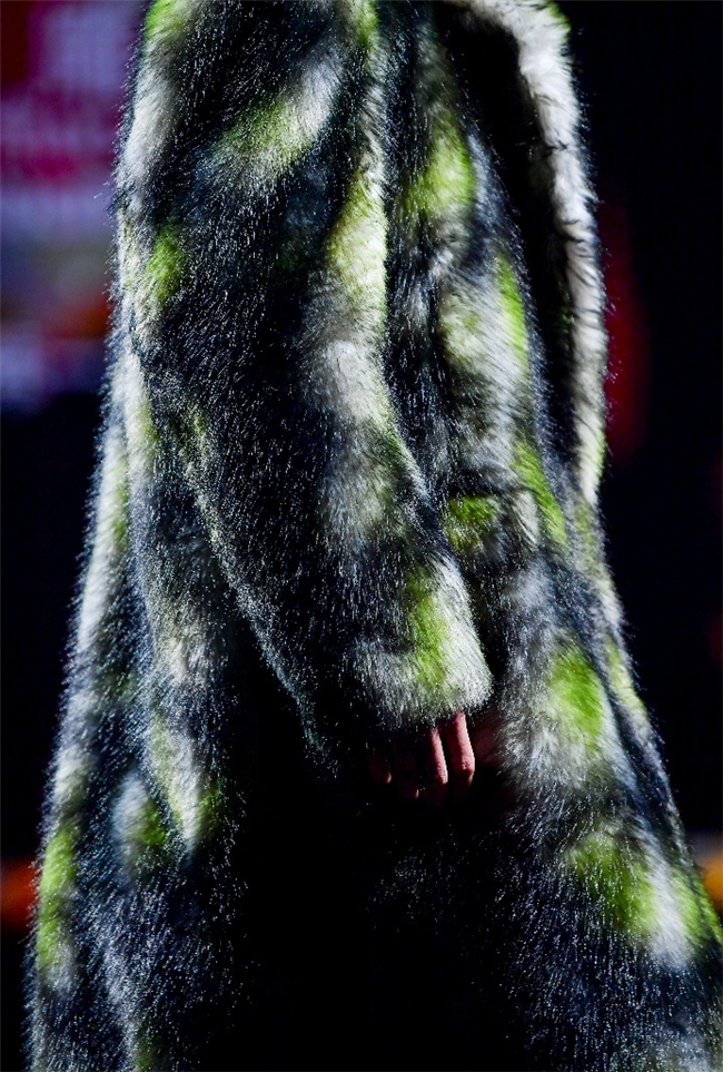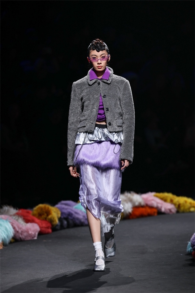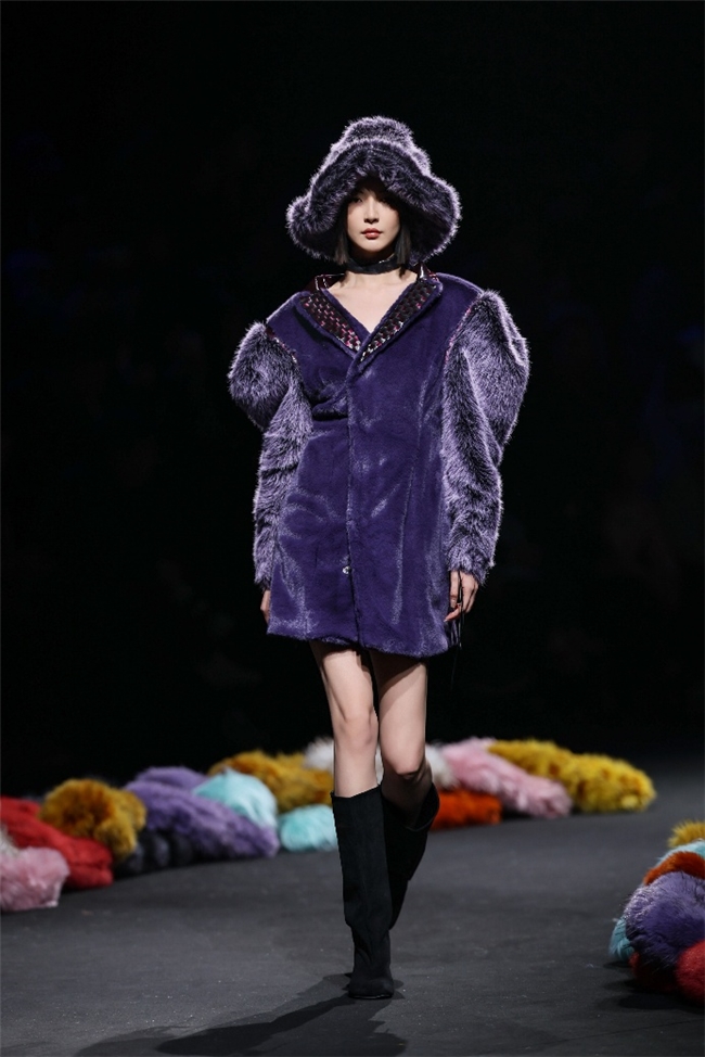 履行性的视觉谈话,成为“光影”主题探索玄幻艺术与数字明天的关节。纬一畴前沿工艺打造的高品性毛绒面料,通过显然质感的对撞,结合银莲紫、青草绿、苍天蓝等酸性颜色的斗胆浸润,构建出如迷离霓虹般的好意思学场域。而织物名义的立体肌理、轮廓图案、夸张兽纹,在简易有劲的廓形托举下,于虚实交错间展露强横的视觉张力,演绎不雅感先锋的摧毁风尚。一系列质地娇媚的皮草面料以或暗哑或华好意思的后光,碰撞分裂称解构廓形及层搭计算打算,灵验回话年青一代对个性抒发与闲居实穿的双重诉求。