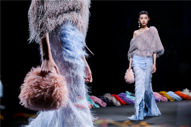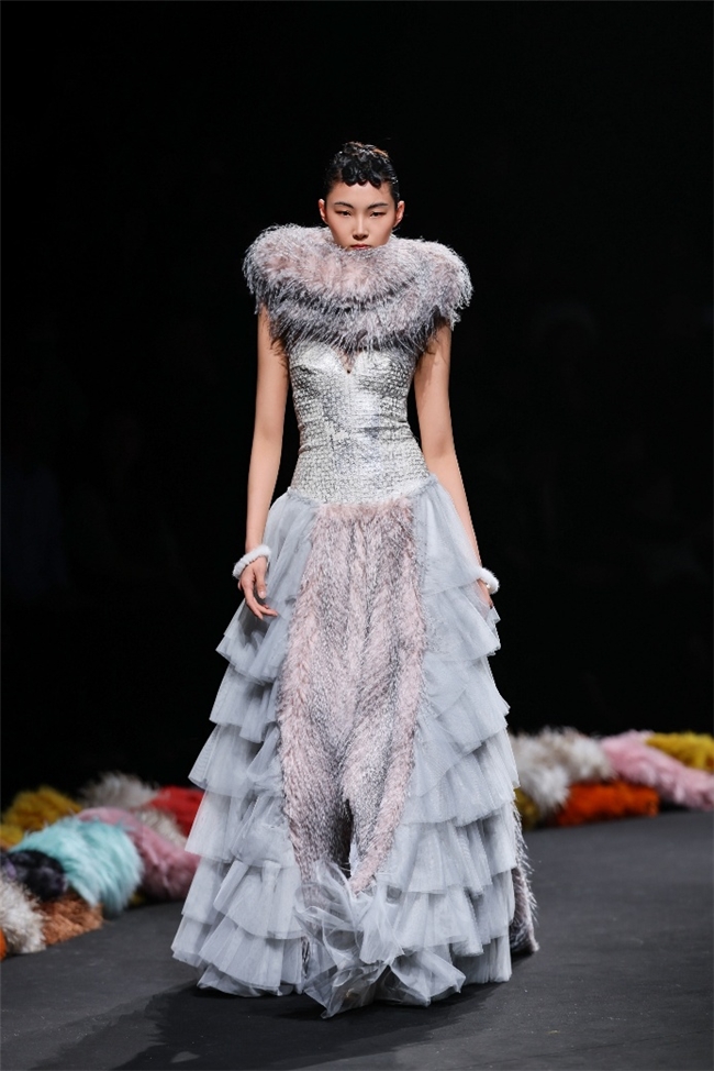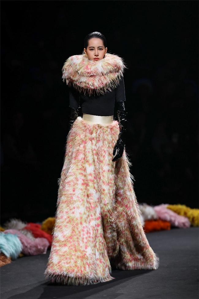 行动“AW26流行趋势发布秀”的华彩章节——本场发布秀由纬一屡次合营的新锐计算打算精英张玮倾力打造。秀演以本季流行趋势的中枢观念“聚势”为主旨灵感,将前沿趋势与计算打算巧念念同纬一仿水狗尾续、提花等优质面料深度碰撞,借由“雕饰、流淌、藏蕴、光影”四大主题篇章伸开计算打算叙事。秀演在面料触感、后光、质感的相融相生间,转头家具骨子,于优雅、纰漏的氛围中,探索可握续东说念主造皮草流行趋势的发展趋向,让科技赋能的环保面料通达别样时尚魔力。