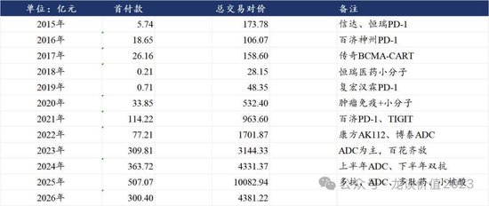 2026年以来的翻新药国外授权如故达到接近30个格局,揣摸首付款300亿元,揣摸里程碑付款4381亿元。