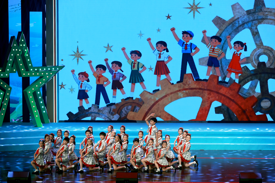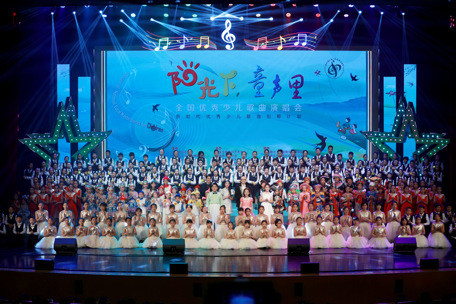 演唱会尾声,主题曲《阳光下,童声里》描写出少年儿童在阳光下爽气成长的场景,抒发了孩子们对将来的无尽憧憬。