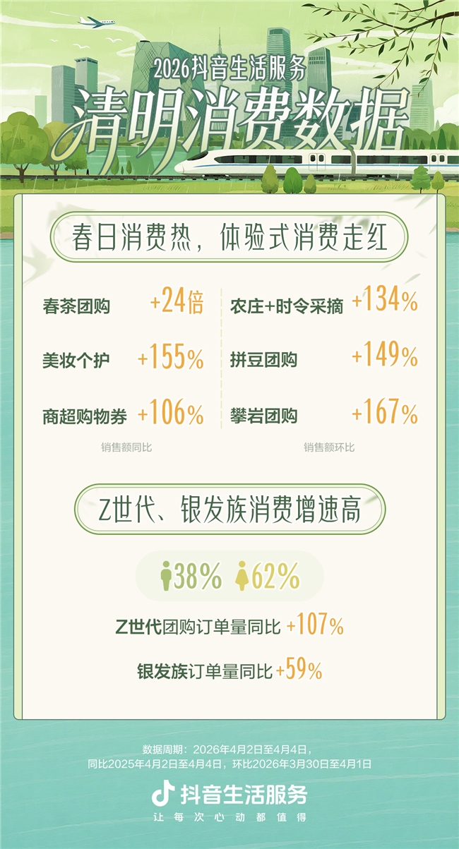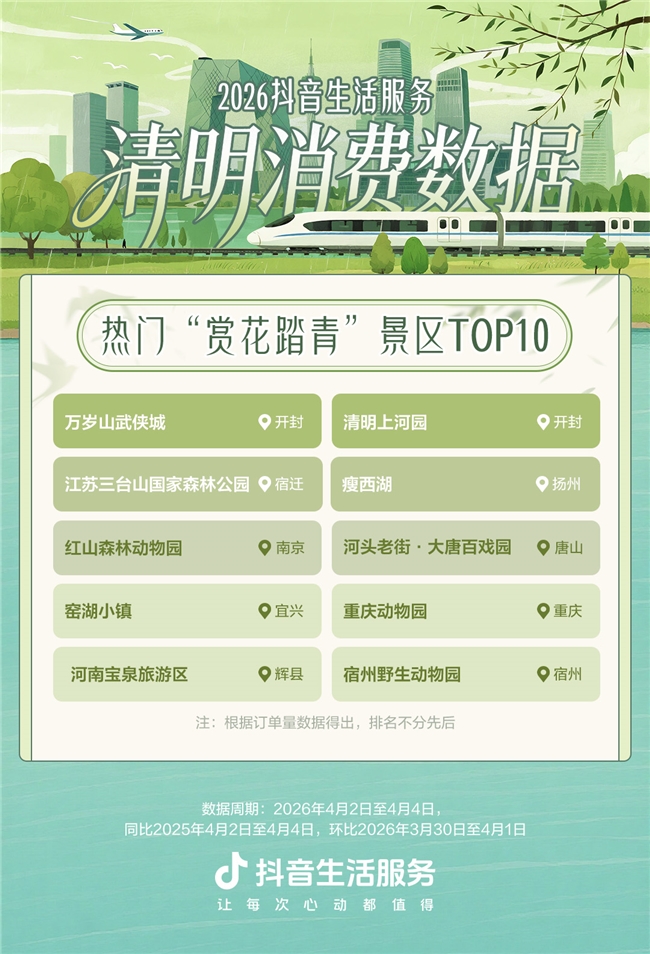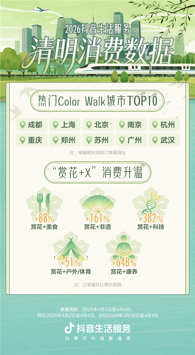 抖音生计事业:明朗假期“赏花+”销耗升温,关联团购订单量环比节前增长超8...收罗2026-04-07 13:27