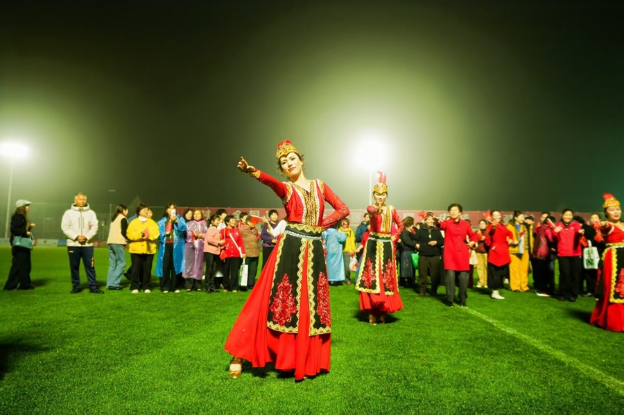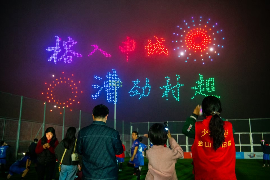 赛事中场休息时刻,夜空也成为“舞台”——无东谈主机饰演搭配秀好意思灯光秀点亮夜空,光影流转间,勾画出乡村振兴的好意思好图景。