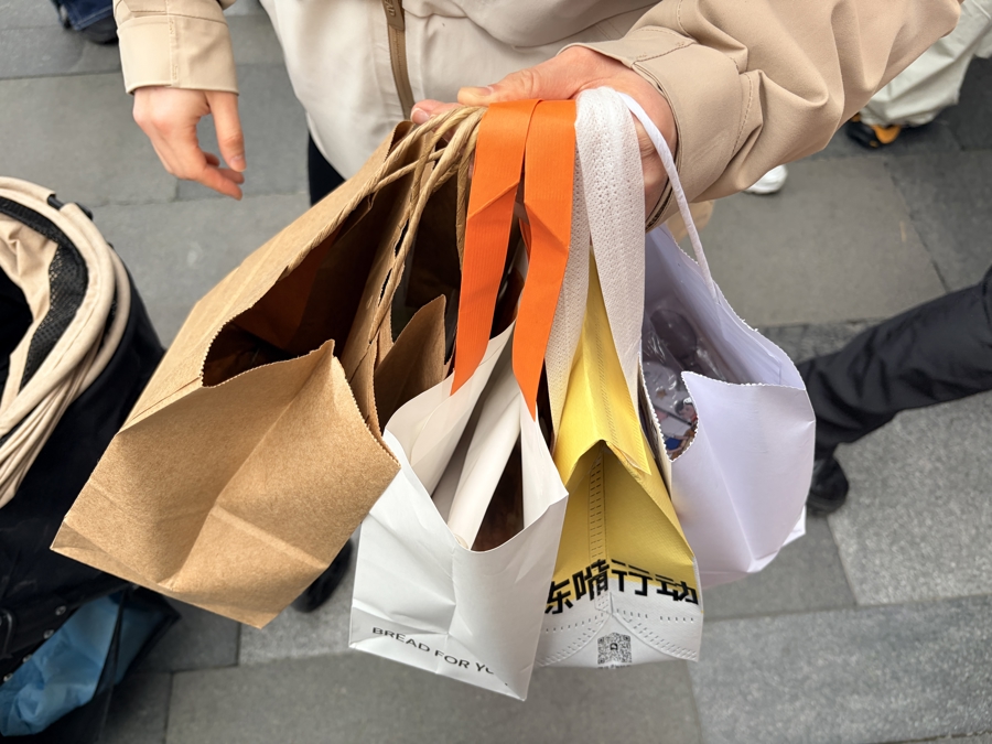 挥霍者向记者展示购买的面包(牛益彤 摄)