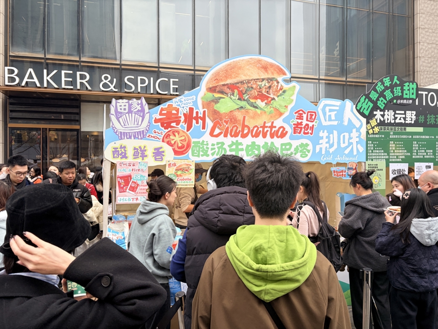 酬酢平台上,“面包脑袋”们早早列好了打卡清单。贵州的“匠东说念主制味”确凿场场必排——客岁那款酸汤牛肉恰巴塔让若干东说念主等了两三个小时,本年军队依然没断过。